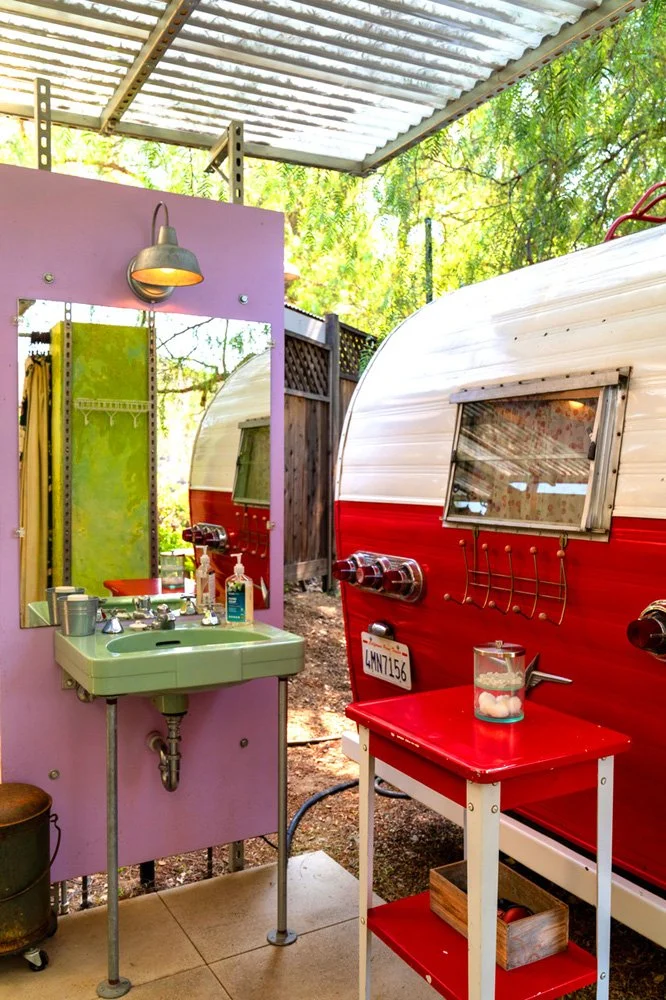 - Guests sleep either inside the heated and air conditioned vintage travel trailer on a queen-sized bed,